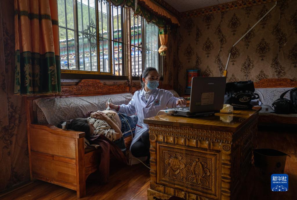 6月12日,陳冰(右)在為扎西央宗進(jìn)行產(chǎn)檢。