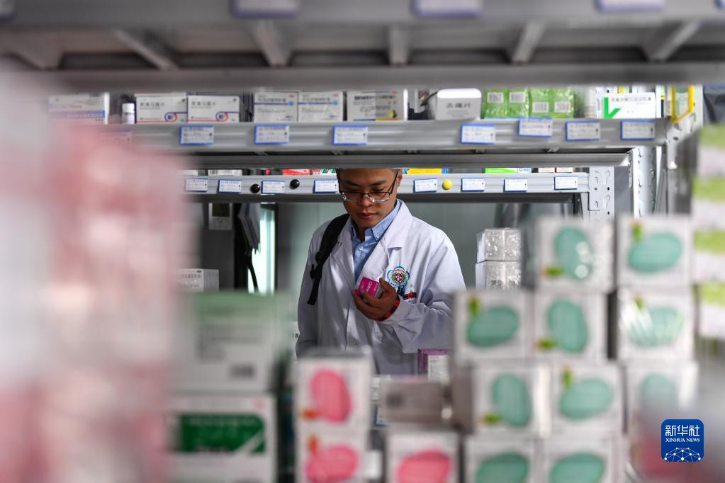 6月12日出發(fā)前,王振疆醫生在米林市人民醫院庫房領(lǐng)取藥品。