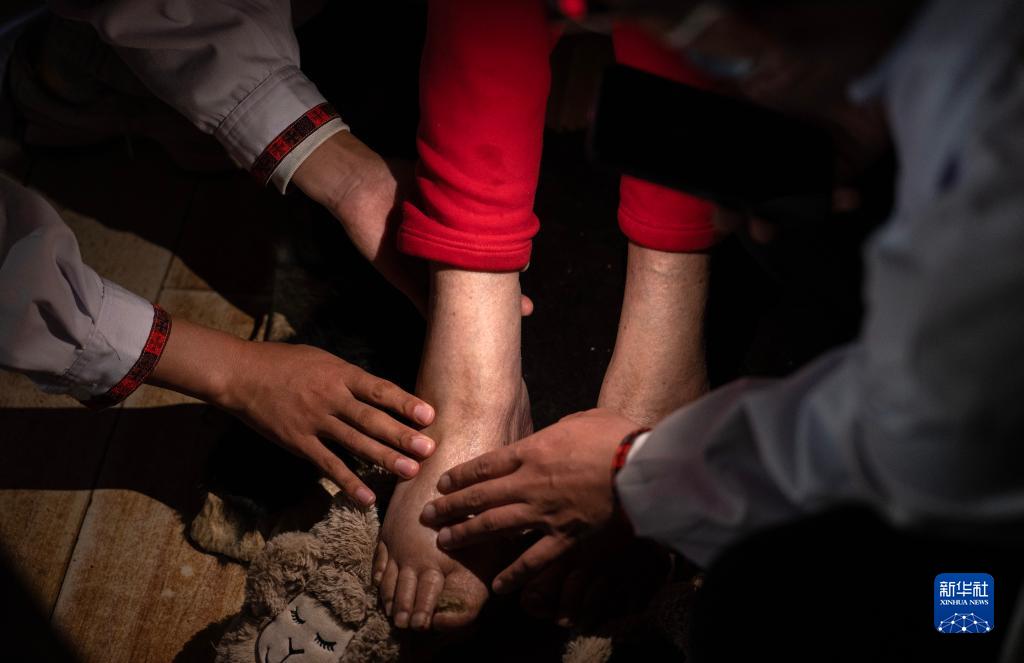 6月12日,王振疆(右)為吞不絨村89歲的村民娘姑進(jìn)行檢查。