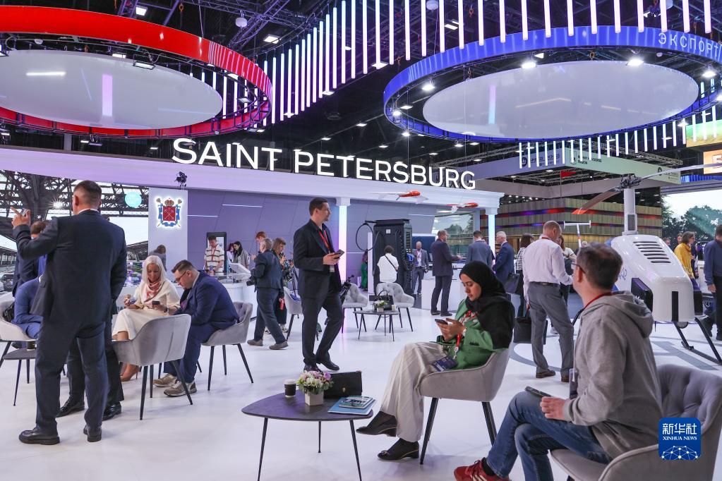 這是6月14日在俄羅斯圣彼得堡國際經(jīng)濟論壇上拍攝的圣彼得堡地區展臺。