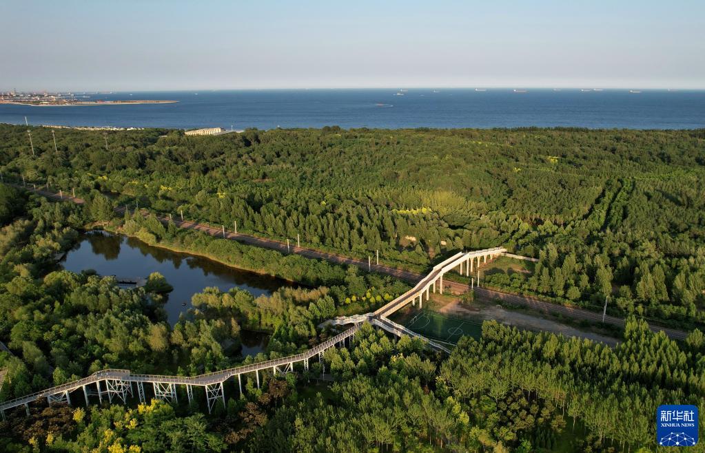 6月6日拍攝的位于秦皇島市海港區的海濱國家森林公園景色(無(wú)人機照片)。