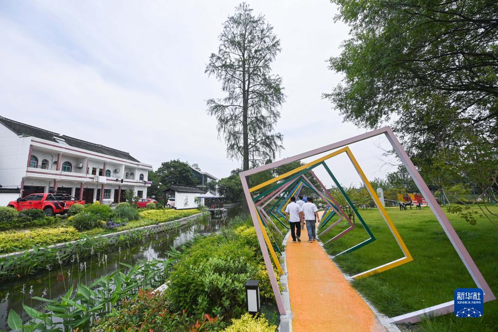 6月15日,游客在嘉興市秀洲區新塍鎮洛東村的公園內游玩。新塍鎮洛東村位于新塍鎮的西北部,2022年,洛東村以?xún)和?huà)為切入點(diǎn),以“鳳凰洲.童畫(huà)村”為主題開(kāi)展未來(lái)鄉村建設,建設布點(diǎn)兒童畫(huà)館、童年劇場(chǎng)等,沉浸式體驗兒童畫(huà)藝術(shù)的魅力。同時(shí)打造“數智+鄰里”的智慧、健康的“兒童友好型”未來(lái)鄉村,被評為2022年度浙江省級未來(lái)鄉村創(chuàng )建成效優(yōu)秀村。