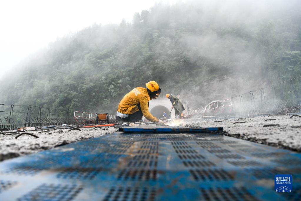 6月15日,貴州橋梁集團工人在六安高速3標段華竹山大橋上施工。