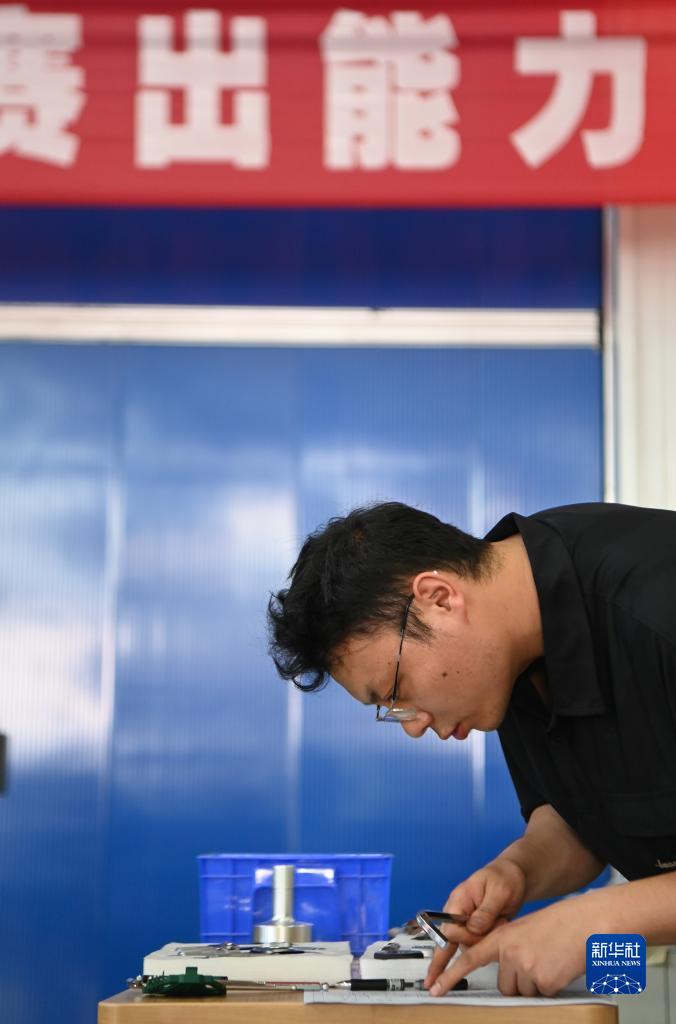 6月15日,選手在第二屆全國技能大賽陜西省選拔賽數控車(chē)項目測試賽中。