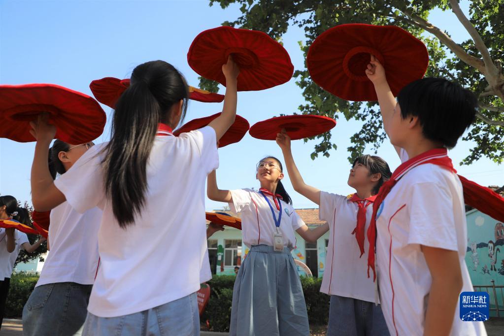 6月15日,在河北省滄州市吳橋縣運河小學(xué),學(xué)生練習雜技轉毯。