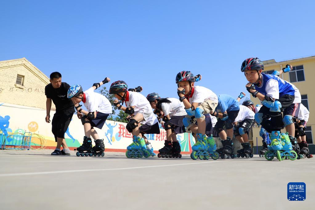 6月15日,在河北省滄州市吳橋縣運河小學(xué),老師指導學(xué)生練習輪滑。