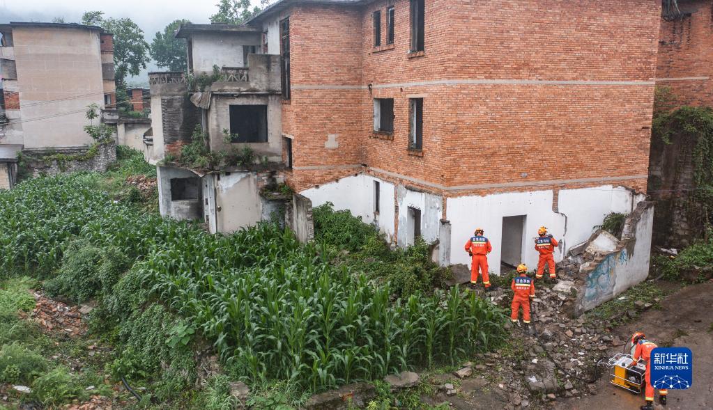 6月15日,六盤(pán)水市消防救援支隊隊員在救援演練中進(jìn)行破拆(無(wú)人機照片)。