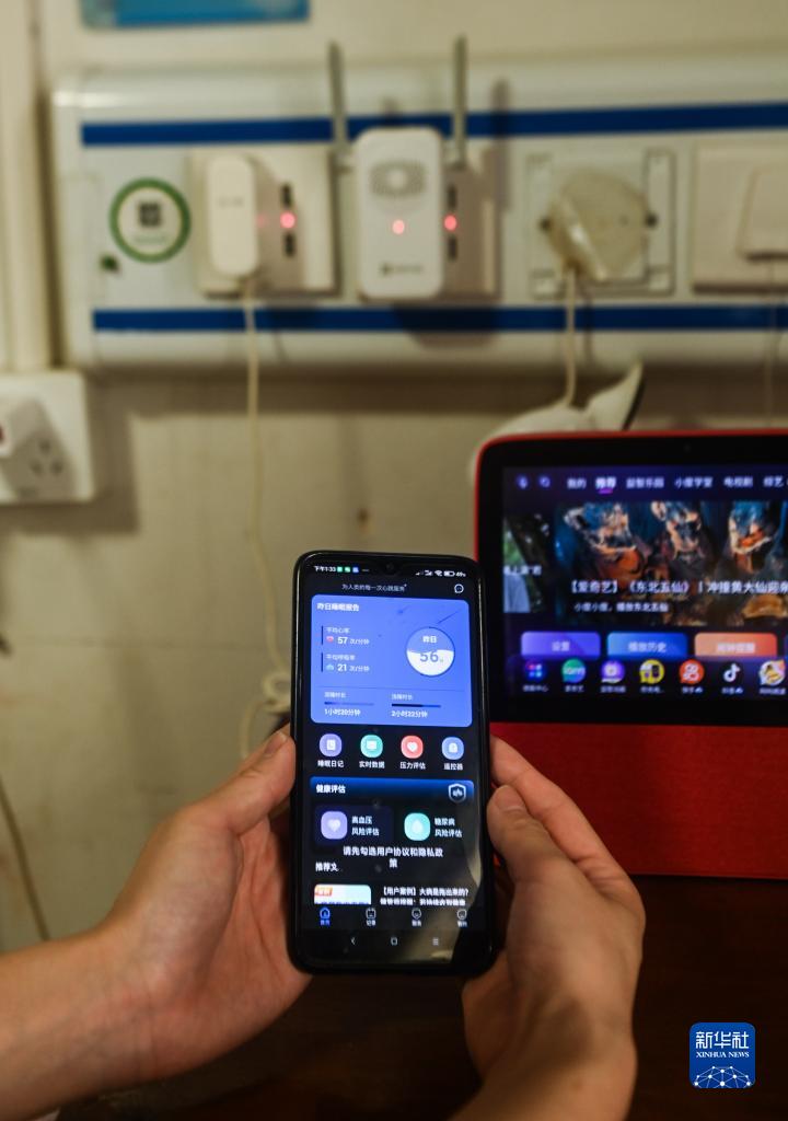 6月15日,家庭醫生展示通過(guò)床上的智能傳感器采集的嘉興市秀洲區新塍鎮蓬萊社區的83歲獨居老人孫志龍的睡眠質(zhì)量數據。