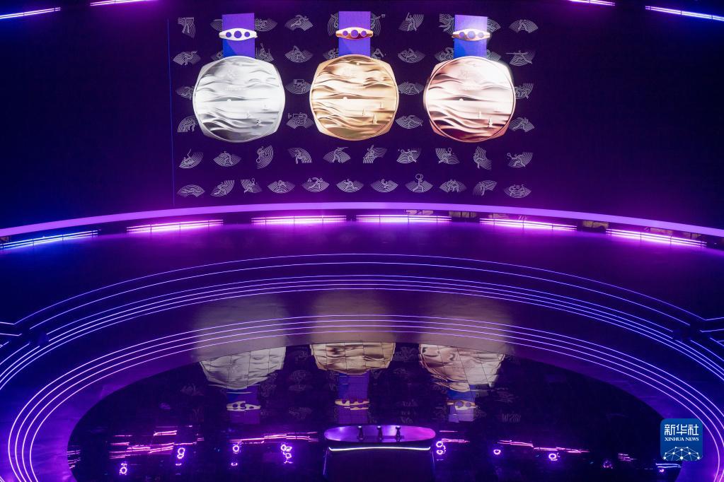 這是6月15日拍攝的杭州亞運會(huì )獎牌“湖山”發(fā)布現場(chǎng)。