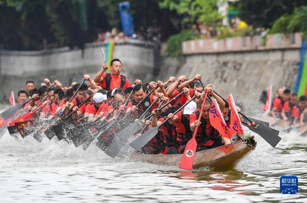 自農歷四月初八“起龍舟”開(kāi)始,廣州地區就開(kāi)啟了劃龍舟、迎端午的年度大戲。6月15日,車(chē)陂村12條龍船在車(chē)陂涌進(jìn)行龍舟競渡。