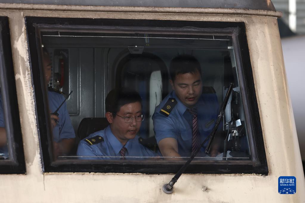 6月15日,滬寧沿江高鐵檢測列車(chē)的工作人員在做發(fā)車(chē)前的準備。