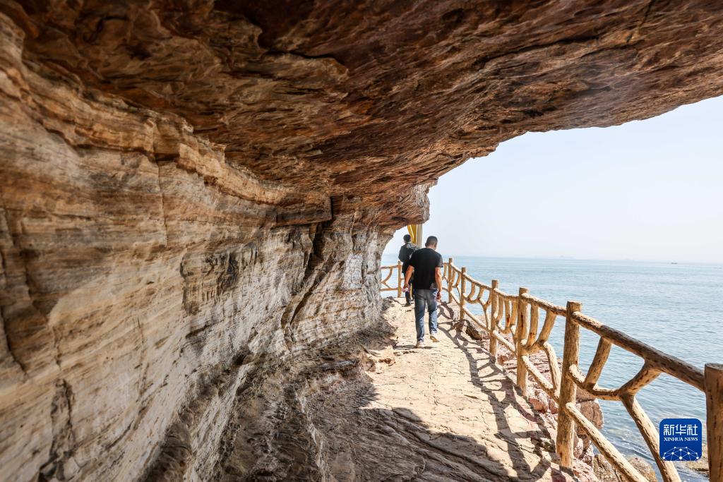位于渤海灣山東長(cháng)島海洋生態(tài)文明綜合試驗區內的大黑山島是一座火山島,在島東端的龍爪山山腰部的石英巖上有一條長(cháng)約1.5公里的因億萬(wàn)年風(fēng)化和海蝕作用形成的天然“棧道”,隨著(zhù)海平面下降,“棧道”露出水面。據地質(zhì)部門(mén)勘察,海蝕“棧道”包含了大量古生物、海洋運動(dòng)信息,具有較高的地質(zhì)學(xué)研究?jì)r(jià)值,每年吸引游客前來(lái)參觀(guān)。