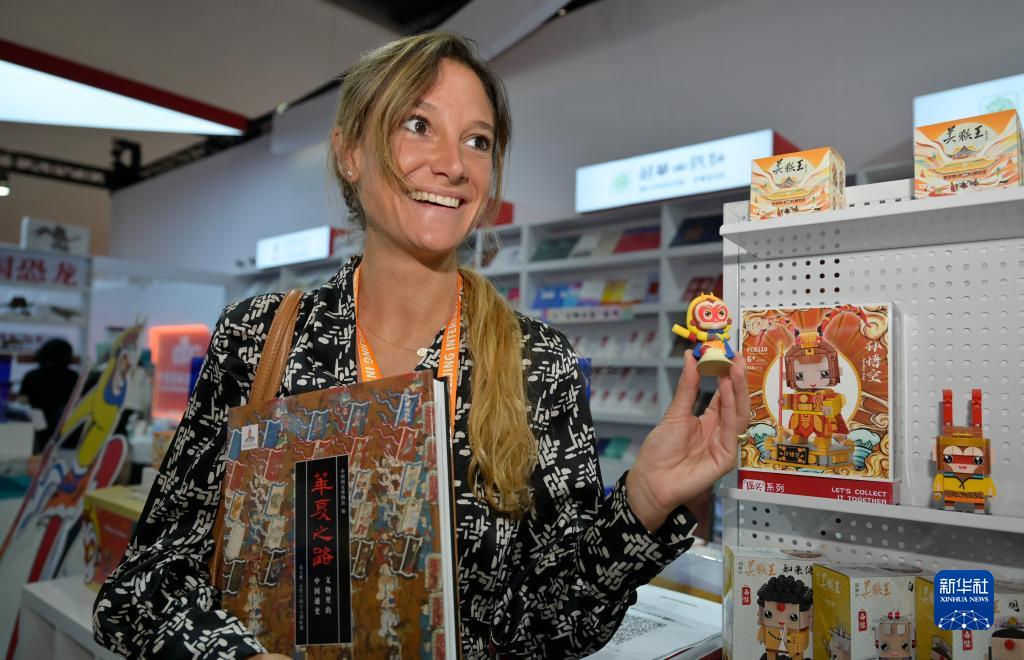 6月16日,在北京舉行的第29屆北京國際圖書(shū)博覽會(huì )上,外國出版商觀(guān)看“美猴王系列”文創(chuàng )產(chǎn)品。