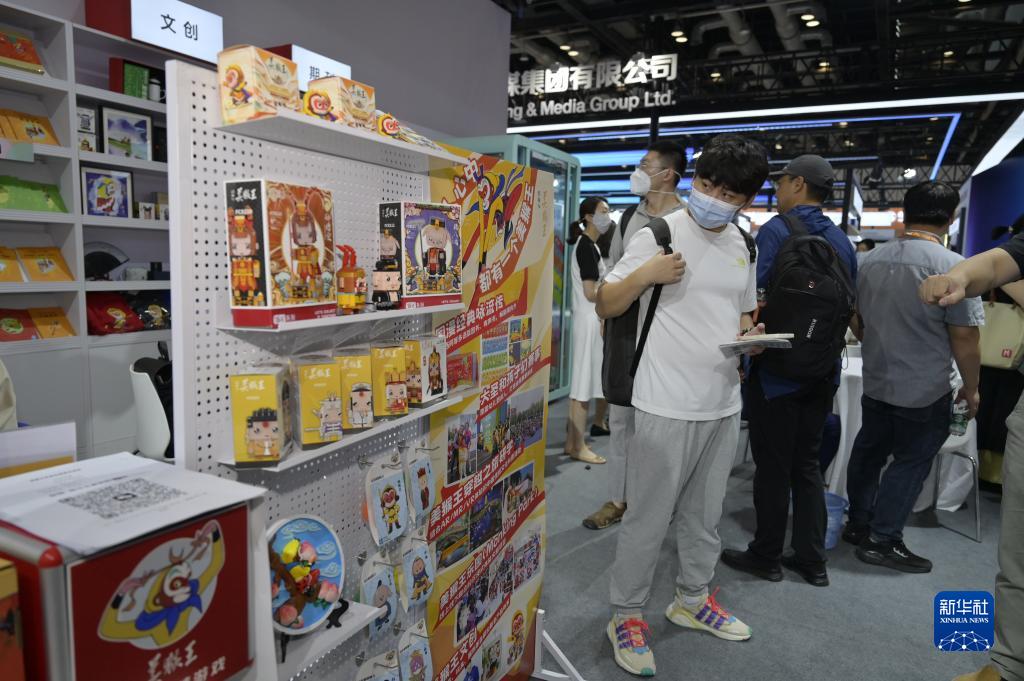 6月16日,觀(guān)眾在北京舉行的第29屆北京國際圖書(shū)博覽會(huì )上觀(guān)看展示的“美猴王系列”文創(chuàng )產(chǎn)品。