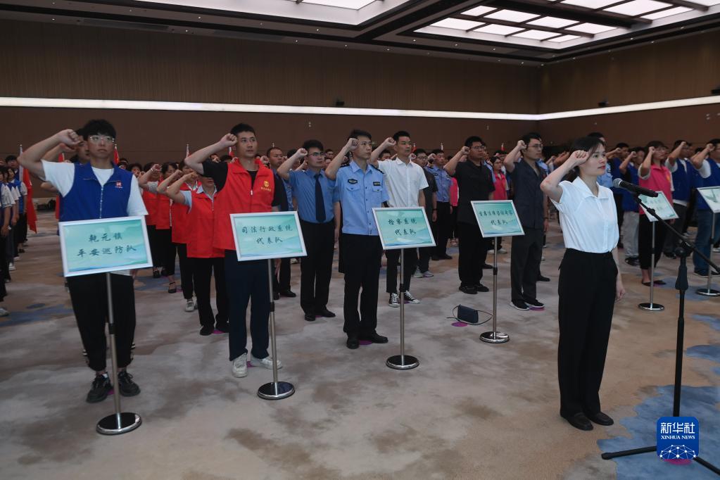 6月16日,來(lái)自德清縣各部門(mén)的青年普法志愿者在啟動(dòng)儀式參加宣誓儀式。
