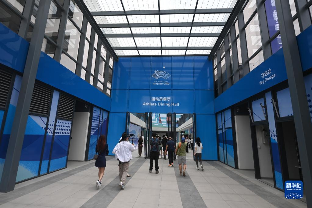 6月16日,媒體記者在杭州亞運村運動(dòng)員餐廳參觀(guān)。