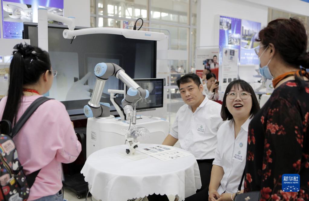6月16日,參展商向參會(huì )者介紹口腔手術(shù)機器人。