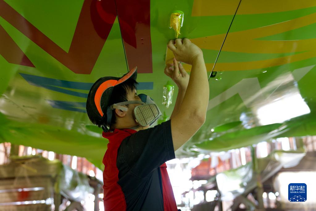 6月15日,海航斯提斯噴漆作業(yè)員在恢復機身外部標牌。