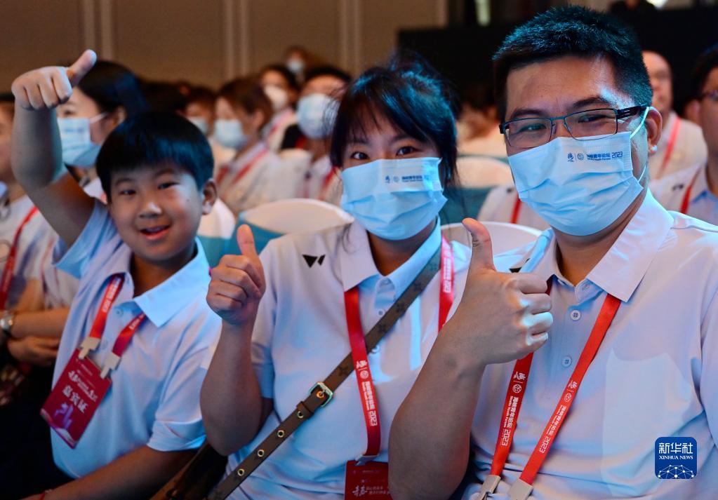 6月16日,曾崇信(右一)一家三口受邀參加在廈門(mén)舉行的第二十一屆海峽青年論壇開(kāi)幕式。
