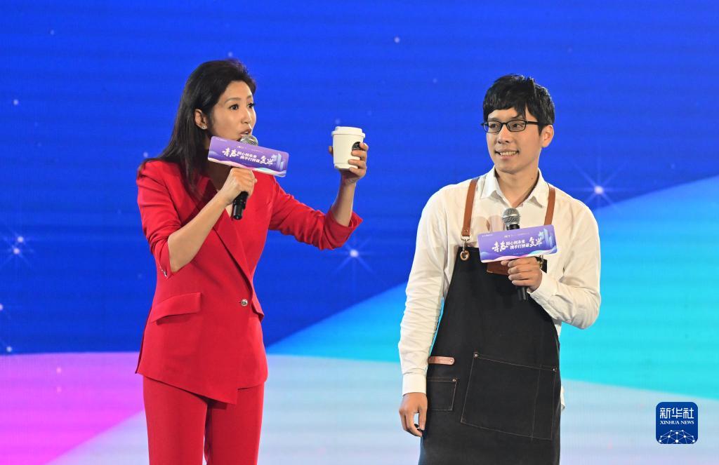 6月16日,第二十一屆海峽青年論壇開(kāi)幕式現場(chǎng),臺灣青年郭屹凡(右)講述在大陸創(chuàng )業(yè)故事。