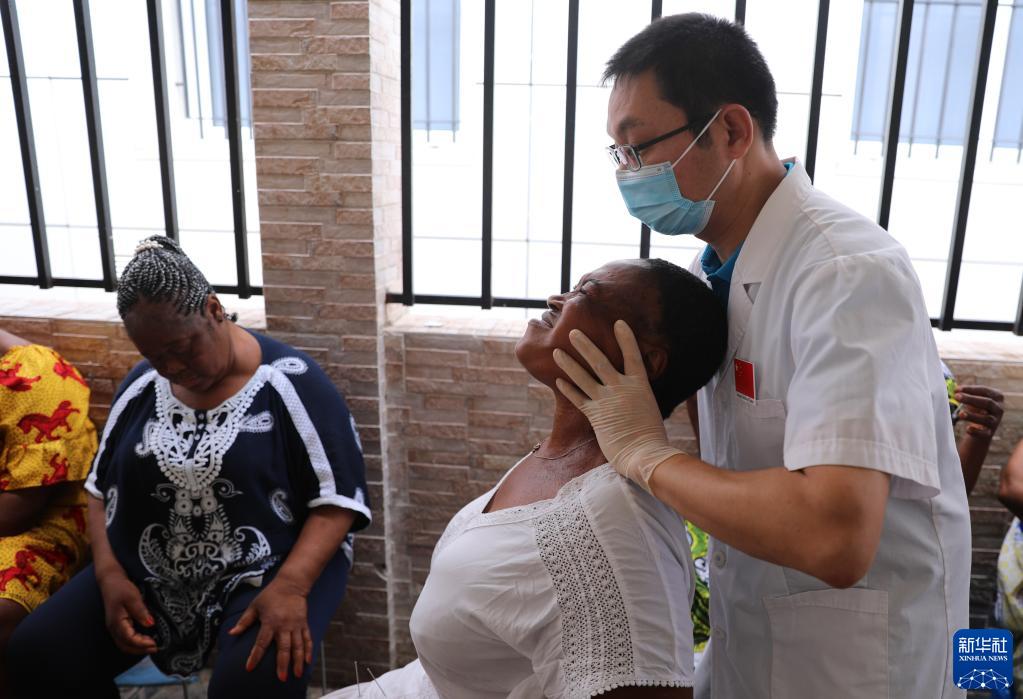 6月14日,在赤道幾內亞首都馬拉博的馬拉博地區醫院,中國醫療隊骨科醫生吳培玉為病人治療。