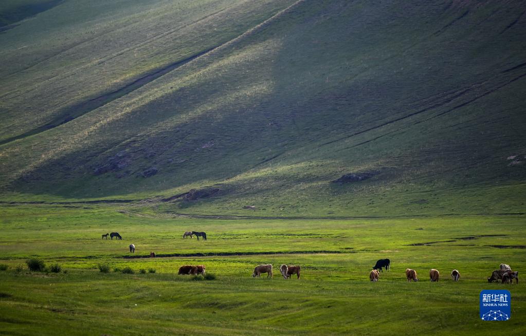 內蒙古赤峰市阿魯科爾沁草原游牧系統核心區總面積500萬(wàn)畝,南連大興安嶺,西接錫林郭勒大草原,是天然的優(yōu)良牧場(chǎng)。眼下,阿魯科爾沁旗巴彥溫都爾蘇木的夏牧場(chǎng)迎來(lái)放牧黃金季節,綠色草原綿延不絕,在牛羊、氈房的點(diǎn)綴下更加多姿多彩。
