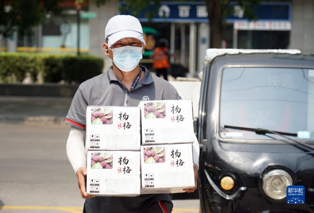 6月17日,順豐速運快遞員楊敬山在北京市海淀區中關(guān)村街道中關(guān)村南五街附近送快件。