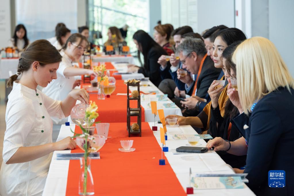 6月16日,人們在匈牙利布達佩斯舉行的“茶和天下·雅集”暨中國茶文化主題展上品茶。