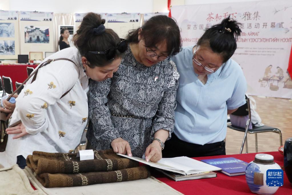 6月16日,在蒙古國東戈壁省賽音山達,當地茶文化愛(ài)好者翻閱相關(guān)書(shū)籍。