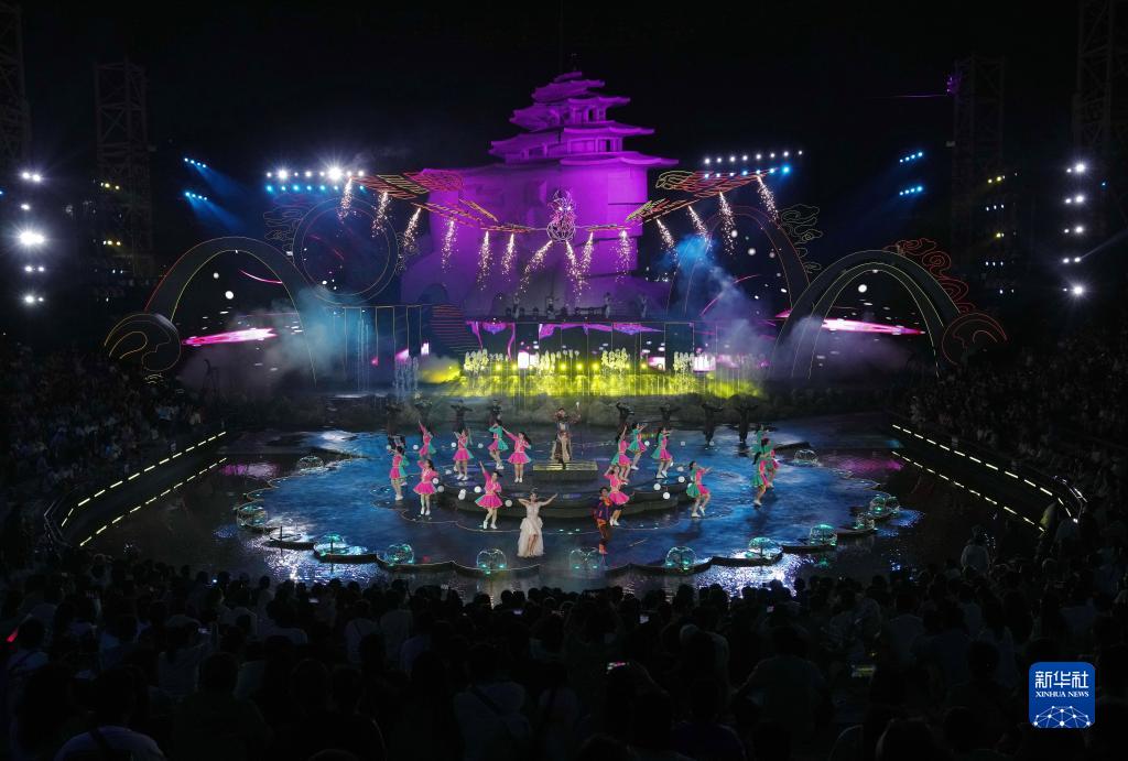 6月17日,在秦皇島市北戴河區碧螺塔酒吧公園,演員為游客表演海上實(shí)景奇幻秀《塔秀》。