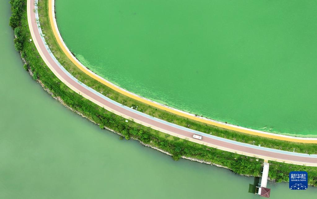 由中鐵四局修復建設的九江市賽城湖綠道(6月15日攝,無(wú)人機照片)。
