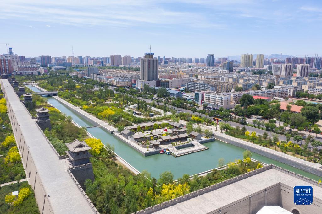 大同古城和城市街景相映成景(2023年6月8日攝,無(wú)人機照片)。