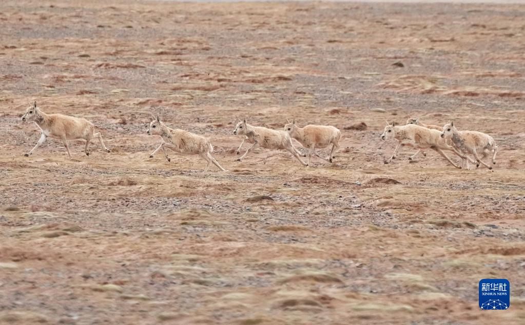 6月16日在可可西里卓乃湖區域拍攝的一群藏羚羊。