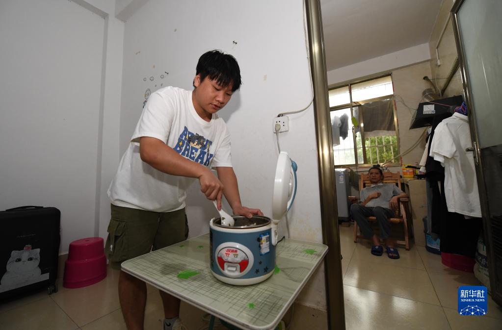 6月17日,在廣西南寧,袁東旺在學(xué)校附近的出租房里做飯。