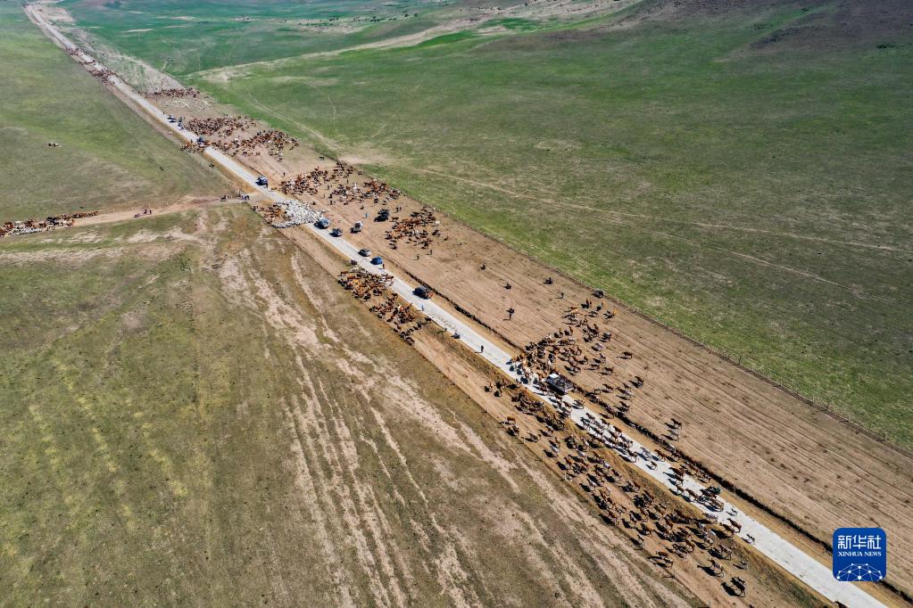 6月15日,內蒙古赤峰市阿魯科爾沁旗2000余戶(hù)牧民趕著(zhù)14.6萬(wàn)頭牲畜從定居點(diǎn)出發(fā),前往水草豐美的夏營(yíng)地進(jìn)行轉場(chǎng)。這是當地牧民一直延續下來(lái)的沿河遷徙、逐水草而居的游牧傳統。