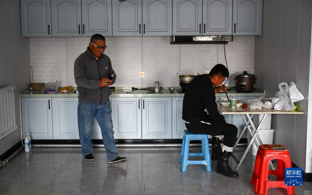 6月15日,額爾敦巴特爾(左)和格日樂(lè )朝格圖在家吃早飯,準備啟程。