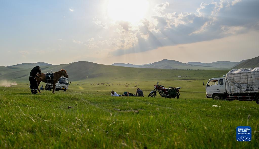 遷徙的路程充滿(mǎn)艱辛,他們越過(guò)重重山巒、跨過(guò)多條河流,直到6月17日才到達夏營(yíng)地。然而相比以往,牧民的遷徙之旅已有很大改善。從最早的勒勒車(chē)、套馬車(chē),再到三輪和四輪車(chē),如今,牧民們都開(kāi)上了農用卡車(chē),有的牧民還會(huì )給牲畜訂上“專(zhuān)車(chē)”,不到一天時(shí)間就能抵達夏營(yíng)地。