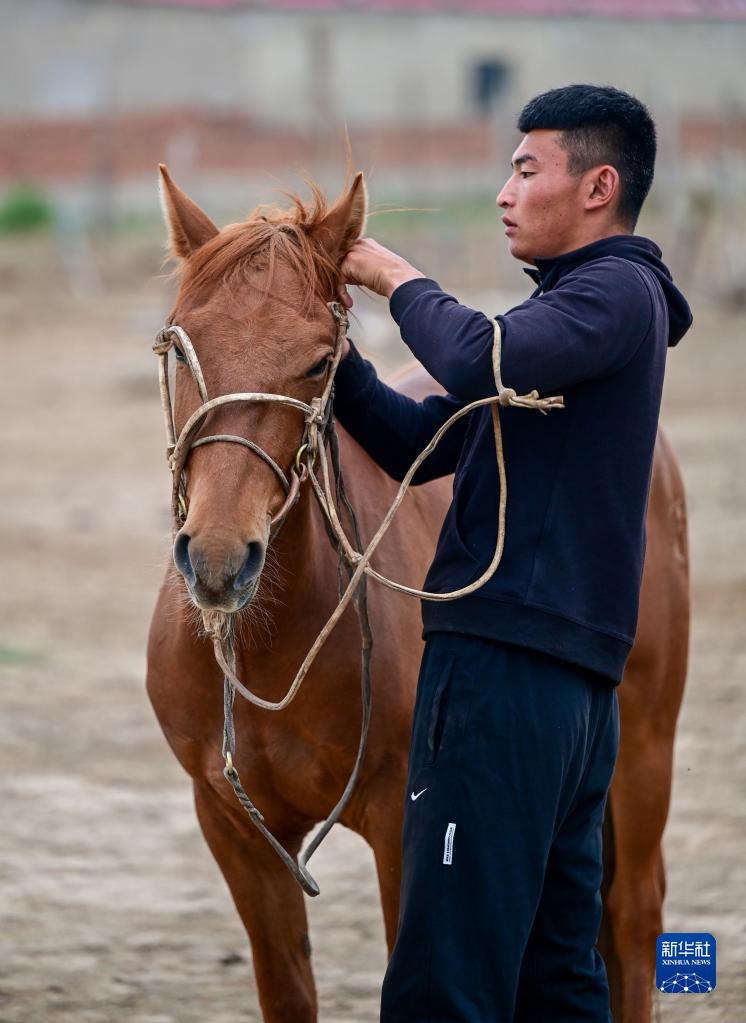 6月15日,格日樂(lè )朝格圖給馬套上籠頭,準備出發(fā)。