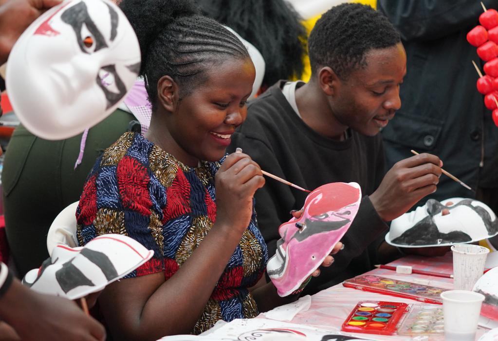 6月17日,在肯尼亞內羅畢,人們在內羅畢國際文化節的中國展位體驗京劇臉譜繪畫(huà)。
