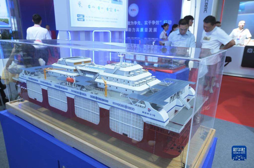 這是在現場(chǎng)展出的“閩投惠安1號”深遠海養殖設備(6月18日攝)。