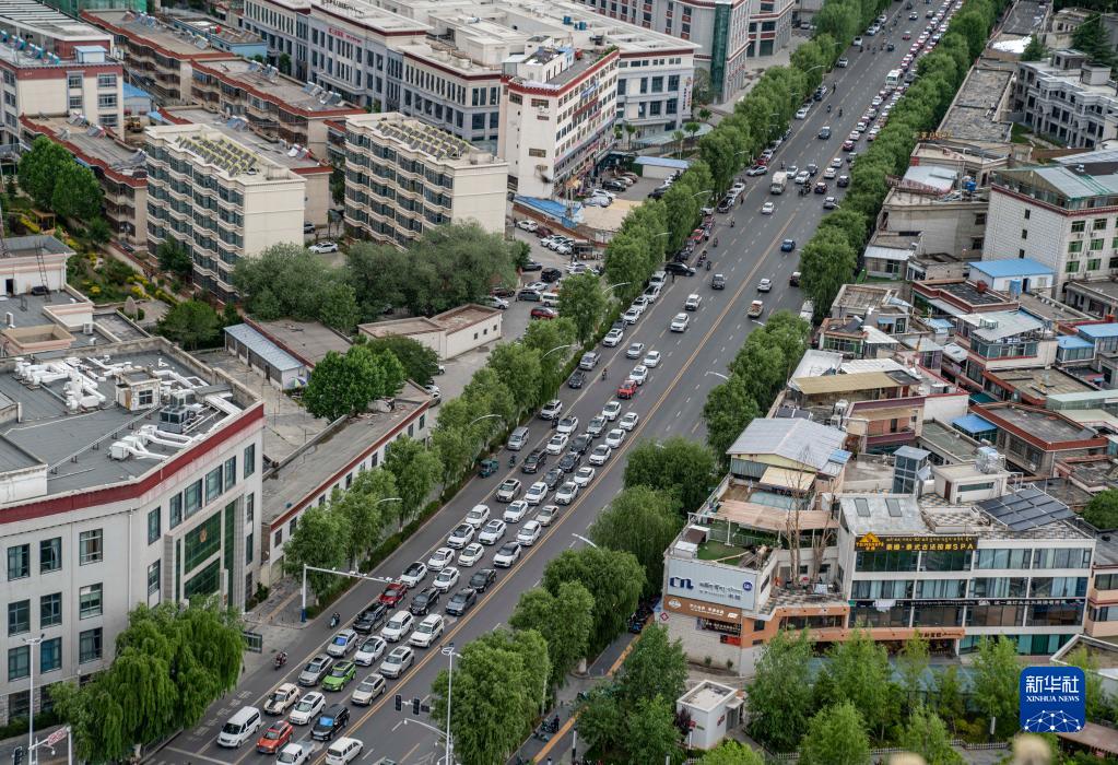 這是拉薩市街道上的車(chē)流(6月15日攝)。