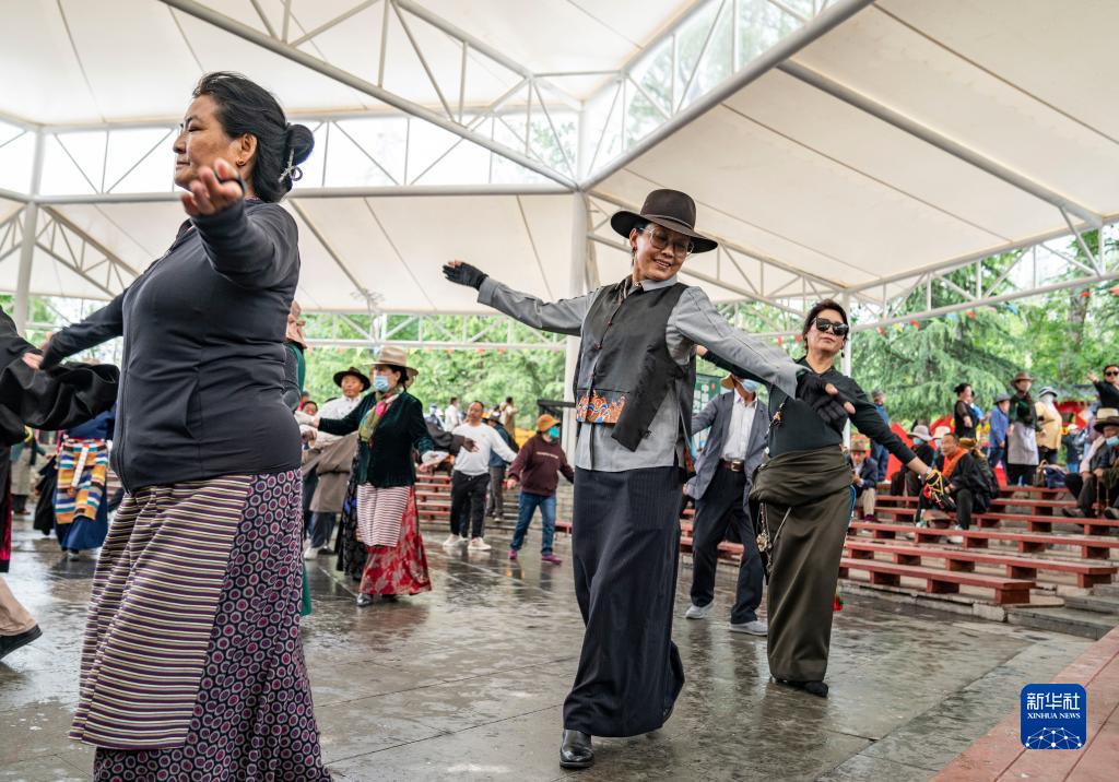 在宗角祿康公園,市民們跳起鍋莊舞(6月14日攝)。