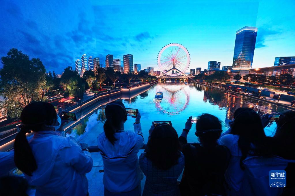 游人在揚州中國大運河博物館“5G大運河沉浸式體驗區”參觀(guān)(6月14日攝)。