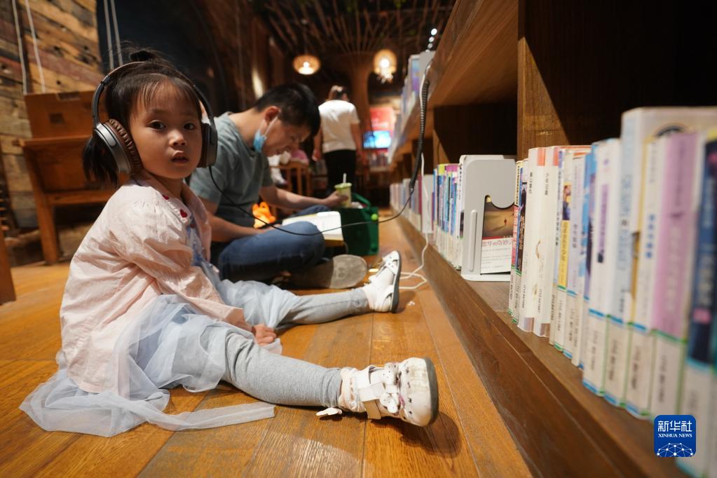 小朋友在揚州古運河畔的城市書(shū)房聽(tīng)故事(6月15日攝)。