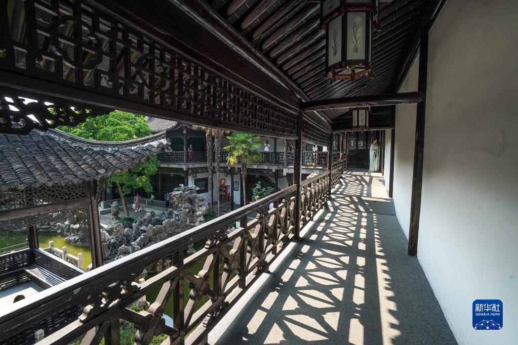游客在何園游玩(6月14日攝)。