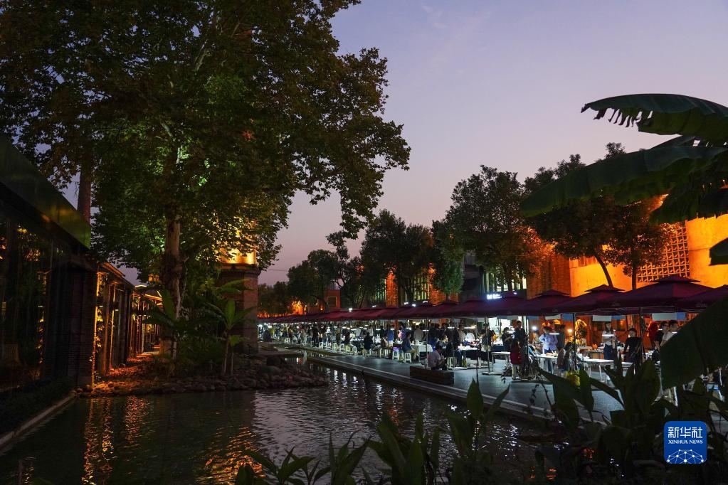 游客們在景德鎮陶溪川文創(chuàng )街區的創(chuàng )意集市游覽(2019年10月8日攝)。