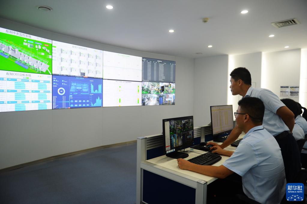 6月18日,在位于福建漳州的青蛙王子集團,工人在洗護工廠(chǎng)可視數據監控中心實(shí)時(shí)查看生產(chǎn)情況。