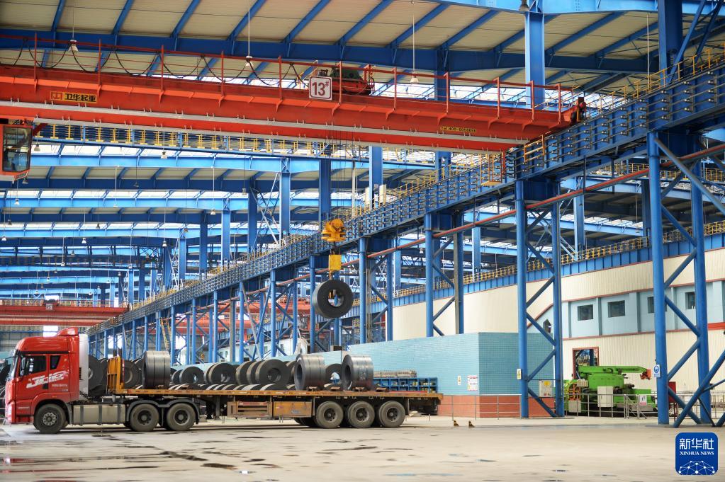 6月19日在位于福建漳州的三寶集團拍攝的生產(chǎn)高強耐腐蝕硅鋼熱軋卷板的無(wú)人全自動(dòng)生產(chǎn)線(xiàn)。