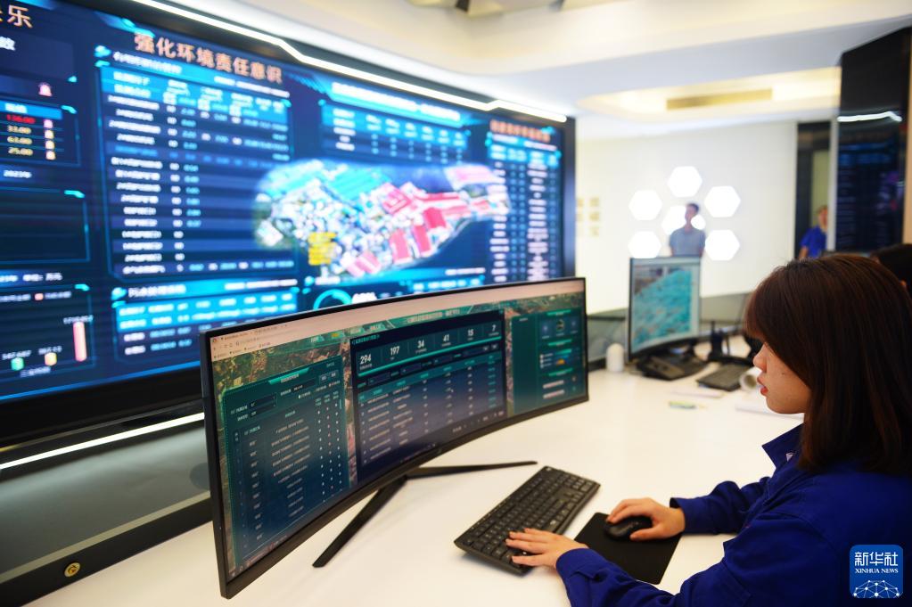 6月19日,在位于福建漳州的三寶集團,工作人員在智慧綜控中心查看安全生產(chǎn)、節能減排等數據。