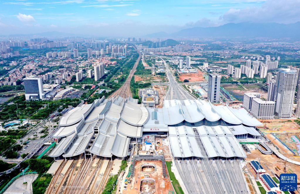 這是6月19日拍攝的福廈高鐵新建廈門(mén)北站(無(wú)人機照片)。